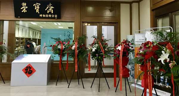 荣宝斋(呼和浩特)分店于2012年8月21日成立营业,标志着百年文化老店正式落户内蒙古。分店位于呼和浩特市回民区公园东路108号呼和浩特民族美术馆内,总面积1600余平米,分为一层展区与二层艺术大讲堂两部分。一层展区主要分为文房四宝厅、木版水印厅、图书厅、原作展厅与金丝楠木文房厅五部分;二层为艺术大讲堂,定期举办艺术培训、艺术家沙龙及全国名家讲座等,为众多艺术爱好者提供艺术交流创作的平台。